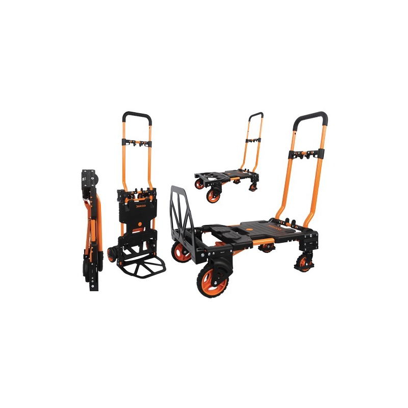 Questo carrello pieghevole Brixo è realizzato in acciaio e alluminio e dispone di una maniglia morbida per un maggiore comfort 2 in 1, potete utilizzarlo in modalità 2 ruote come un normale carrello o con 4 ruote in modalità carrello.